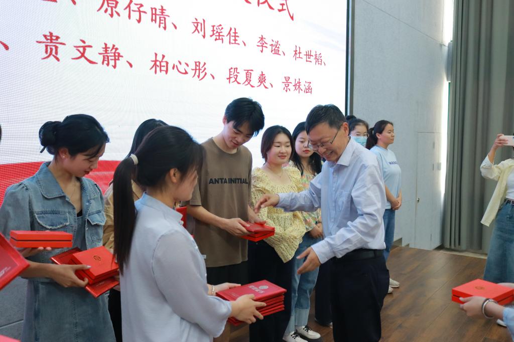 随后,郭桂义和陈义分别为考上硕士研究生的45位毕业生进行了表彰并颁发纪念奖品和证书。