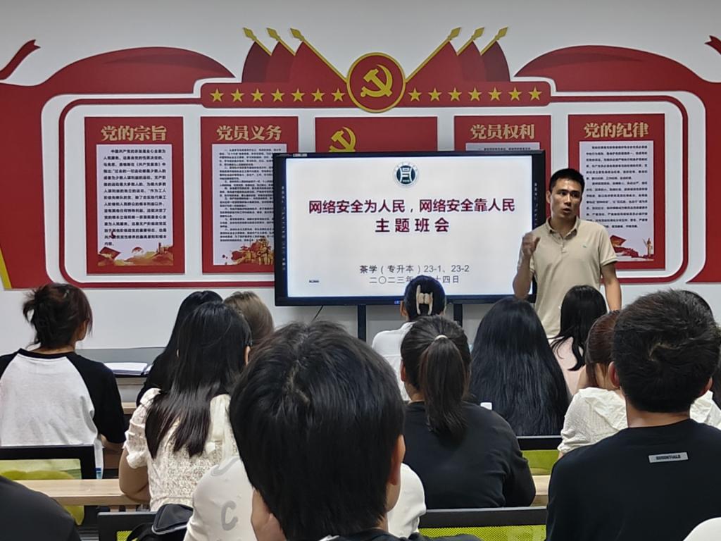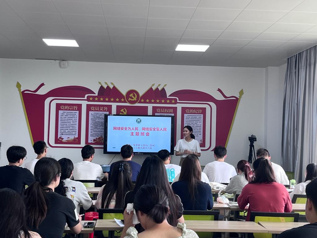 为了进一步提高我院学生的网络安全防范意识和技能,教育引导大家遵守国家网络安全法律法规,营造安全、健康、文明的网络环境,9月11-17日,我院各班级召开了以“网络安全为人民,网络安全靠人民”为主题的“网络安全教育”主题班会,切实引导学生注重网络安全,树立网络安全防护意识,不断提高利用网络空间的获得感、幸福感和安全感。