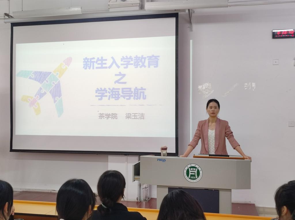发轫之始,学途立志。为引导2023级新生快速适应大学生活,树立正确的学习态度,合理制定学习规划,助力新生扣好新阶段、新学期的“第一粒扣子”,茶学院于9月28日上午在二教206教室开展了新生入学教育之学海导航,学院专职辅导员梁玉洁老师主讲,2023级新生参加。