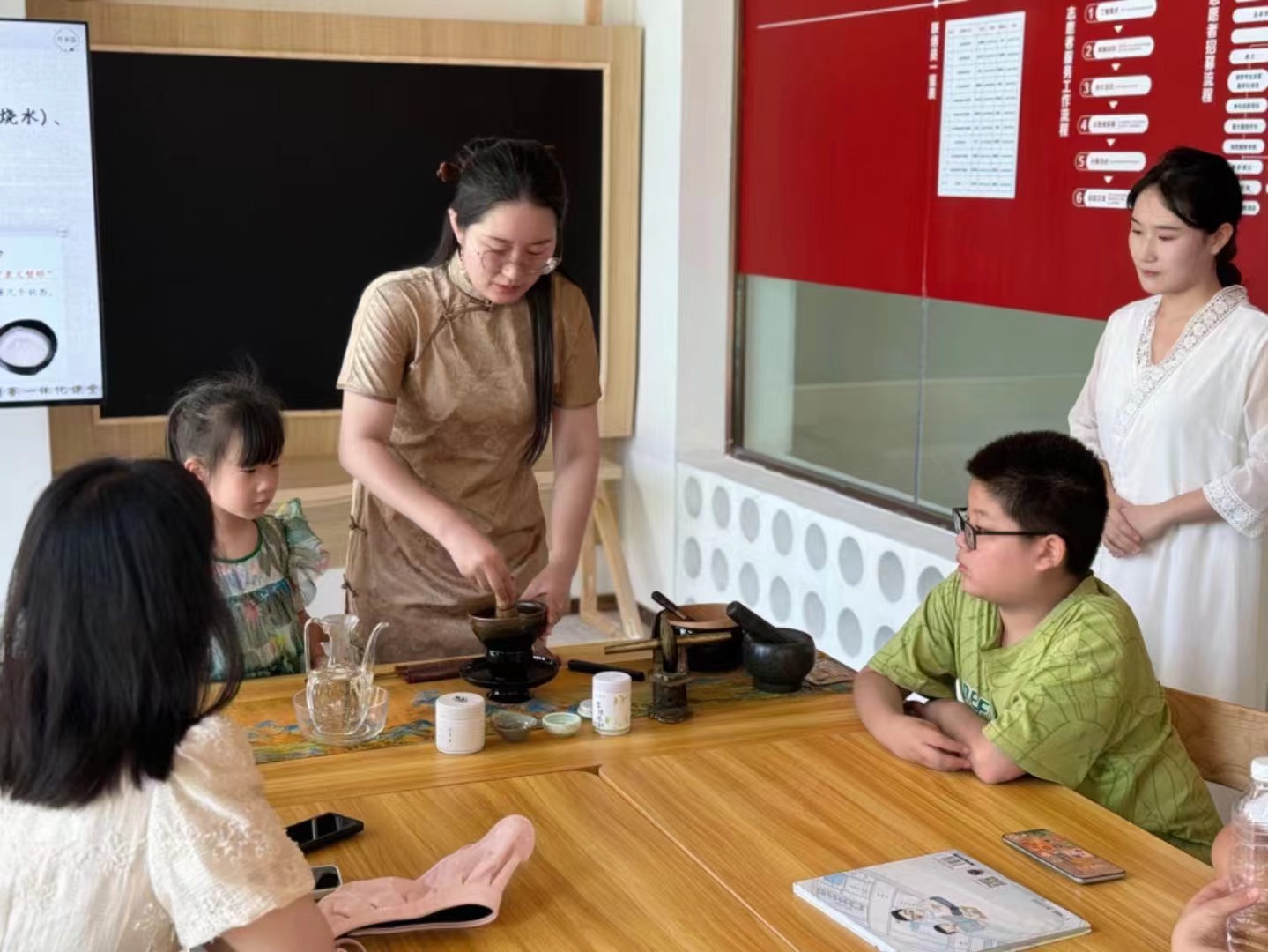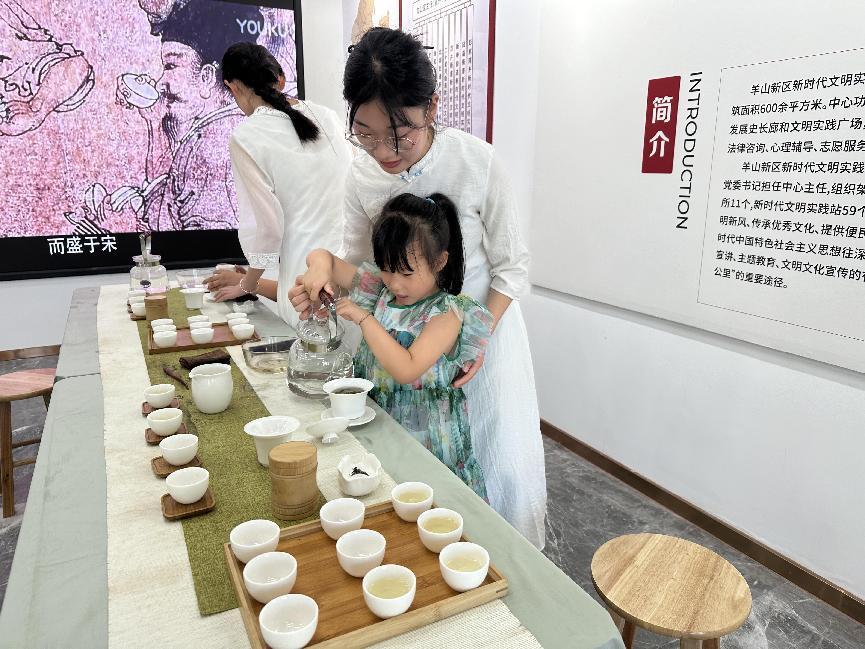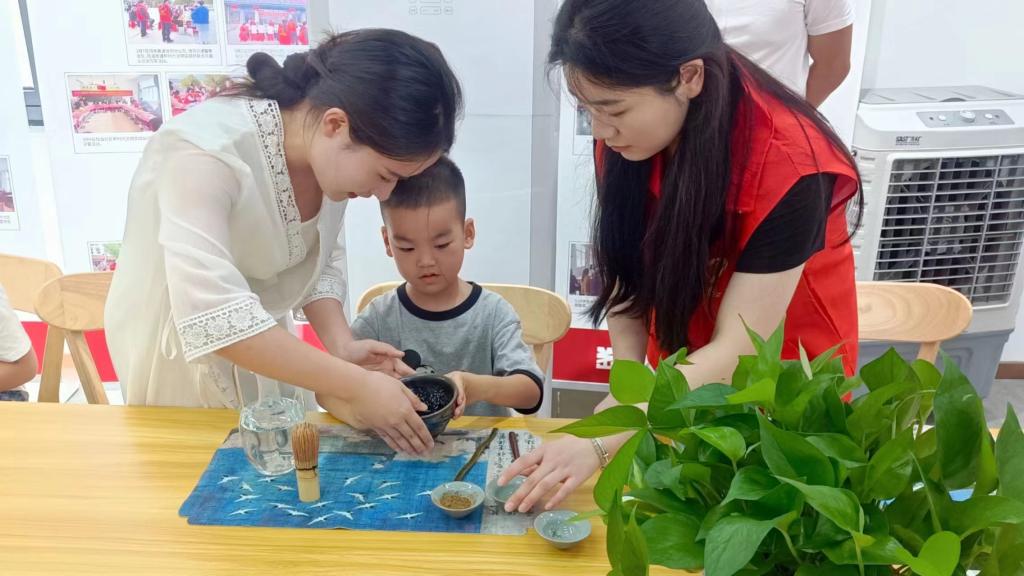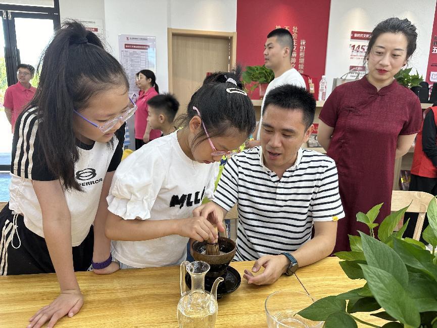 品一盏香茗,叙千年风雅。7月7日,茶学院“茶多星”中华文化传承团在羊山新区新时代文明实践中心开展“不卷课堂”主题活动。团队成员、茶学院青年教师卫艺炜老师主讲了“来试点茶三昧手”茶文化主题微课,为参与活动的周边青少年及家长进行了宋代点茶知识的普及。团队学生成员表演了盖碗茶艺,并指导小朋友们亲身体验点茶、茶艺的魅力。