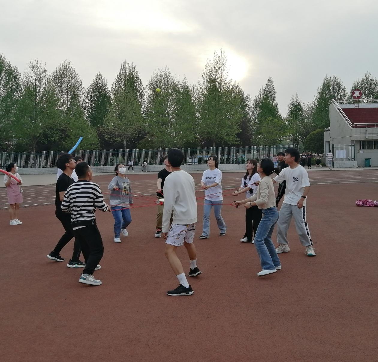 本次心理素质拓展活动项目有趣,同学们参与度高。“公鸡下蛋摸石头过河蒙眼互打鼓动人心袋鼠跳活动,囊括了个体挑战体验与团队协作通关活动现场欢声笑语一片,各个项目都给同学们带去了无穷的乐趣。