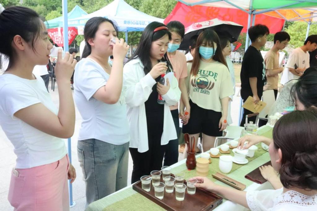 茶学院心理部的成员们精心布置了现场,营造了一个温馨、轻松的氛围。他们通过摆放展板和小游戏的形式,向同学们传递了活动的主题和理念。活动紧密结合学院的专业特点——茶,设置了茶台,由茶艺社团的成员冲泡不同类型的茶,供同学们品尝,从而以茶静心,以茶会友。此外,还设置了很多小游戏,比如吹乒乓球、棋类游戏等,获胜同学可以抽奖,领取文具,在娱乐中享受当下的快乐。