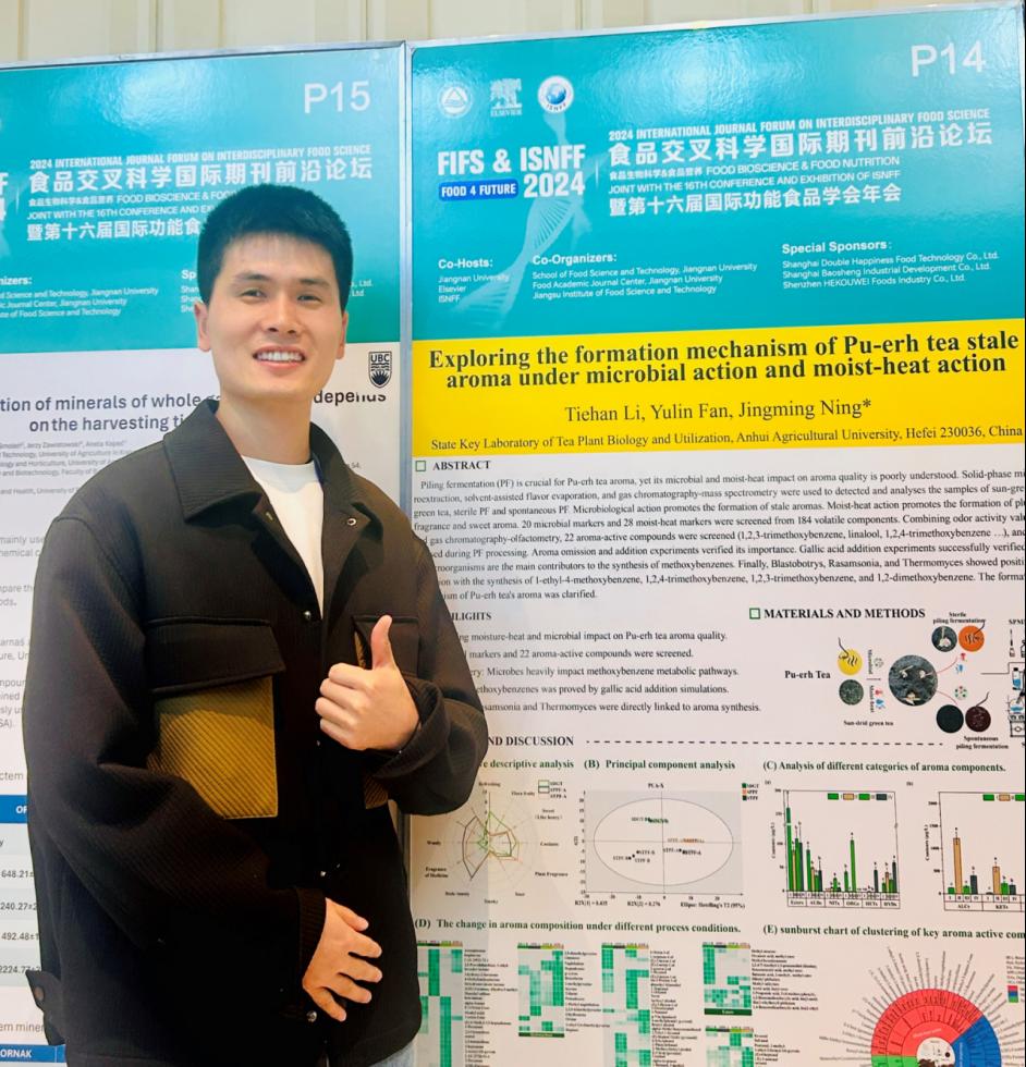 李铁汉,2018届茶学毕业生,安徽农业大学博士毕业后任职于安徽农业大学茶业学院,特任副教授。研究方向:茶叶品质控制与智能化加工。专注于探究普洱茶渥堆过程风味品质的形成机理及数字化品质调控。近五年以第一作者或共一发表SCI论文8篇,其中一区5篇,二区1篇,共一2篇,主要有:Journal of Agricultural and Food Chemistry,中科院1区Top期刊,IF=6.1;Food Control,中科院1区Top期刊,IF=6.0;LWT - Food Science and Technology,中科院1区Top期刊,IF=6.0;Journal of Food Engineering,中科院一区,IF=4.499;Food Chemistry: X,中科1区,IF=6.5;Spectrochimica Acta Part A,中科院二区,IF=3.232。多次应邀在国际、国内学术会议做报告,并获大会奖励2次。参加中国国际大学生创新创业大赛(项目主持人),获得省赛金奖,2025;参加全国第三届茶叶化学与健康大会,青年论坛报告一等奖;2024;参加第七届安徽省互联网+大学生创新创业大赛(参与),省赛银奖,2021。硕博期间主要获得的相关荣誉有:2025年:荣获安徽省优秀毕业生;2025年:获“松阳银猴”茶学奖学金(全国两个);2024年:博士研究生国家奖学金;2024年:获“研究生年度科研奖·杰出新秀”;2024年:全国第三届茶叶化学与健康大会·青年论坛报告一等奖;2023年:获“优秀研究生”暨“安科生物奖学金”;2022-2023年:担任 茶与食品科技学院博士生党支部组织委员;2022年:聘任为茶树生物学与资源利用国家重点实验室大型仪器助理;2021年:安徽农业大学·校优秀毕业生;2020年:硕士研究生国家奖学金;2020年:获“优秀研究生”暨“安科生物奖学金”;2020年:获“研究生年度科研奖·杰出新秀”;2018-2019年:荣获2018年“研究生党支部活动先进个人”称号;2018年:获河南省优秀毕业生。