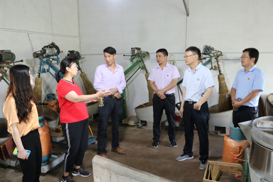 伍德军是车云山村茶叶生产销售大户,也是茶叶生产教学班的学员。黄艳霞、郭桂义一行详细了解该茶叶企业的销售情况与品牌建设,就如何提升茶叶企业的发展竞争力、促进信阳茶产业提质增效、助力脱贫攻坚等进行了座谈交流。