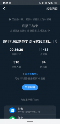 经过此次两个多小时的课程实践直播,开拓了同学们的视野,丰富了同学们的茶叶机械和茶叶精制的相关阅历,对茶叶的初制、精制和包装有了进一步的了解。(茶学院王子浩)
