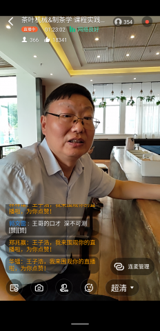 为了加强我院学生对茶叶加工机械的认知能力,提升茶学专业学生实践能力,6月15日上午,茶学院院长郭桂义教授、教学秘书张永瑞、专业教师王杉,《茶叶机械》和《制茶学》课程教师王子浩通过钉钉直播带领2017级茶学、2017级茶学(茶文化与营销)、2017级茶学(对本)、2019级茶学专升本、2017级茶艺与茶叶营销等专业班级,共计376位学生在中豫集团卢氏茶叶公司线上开展《茶叶机械》、《制茶学》课程实践教学。