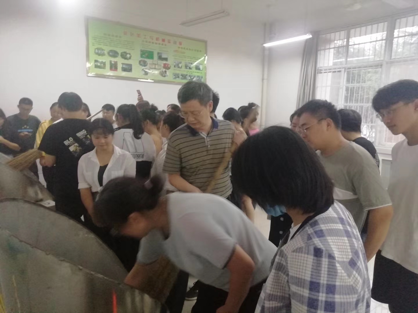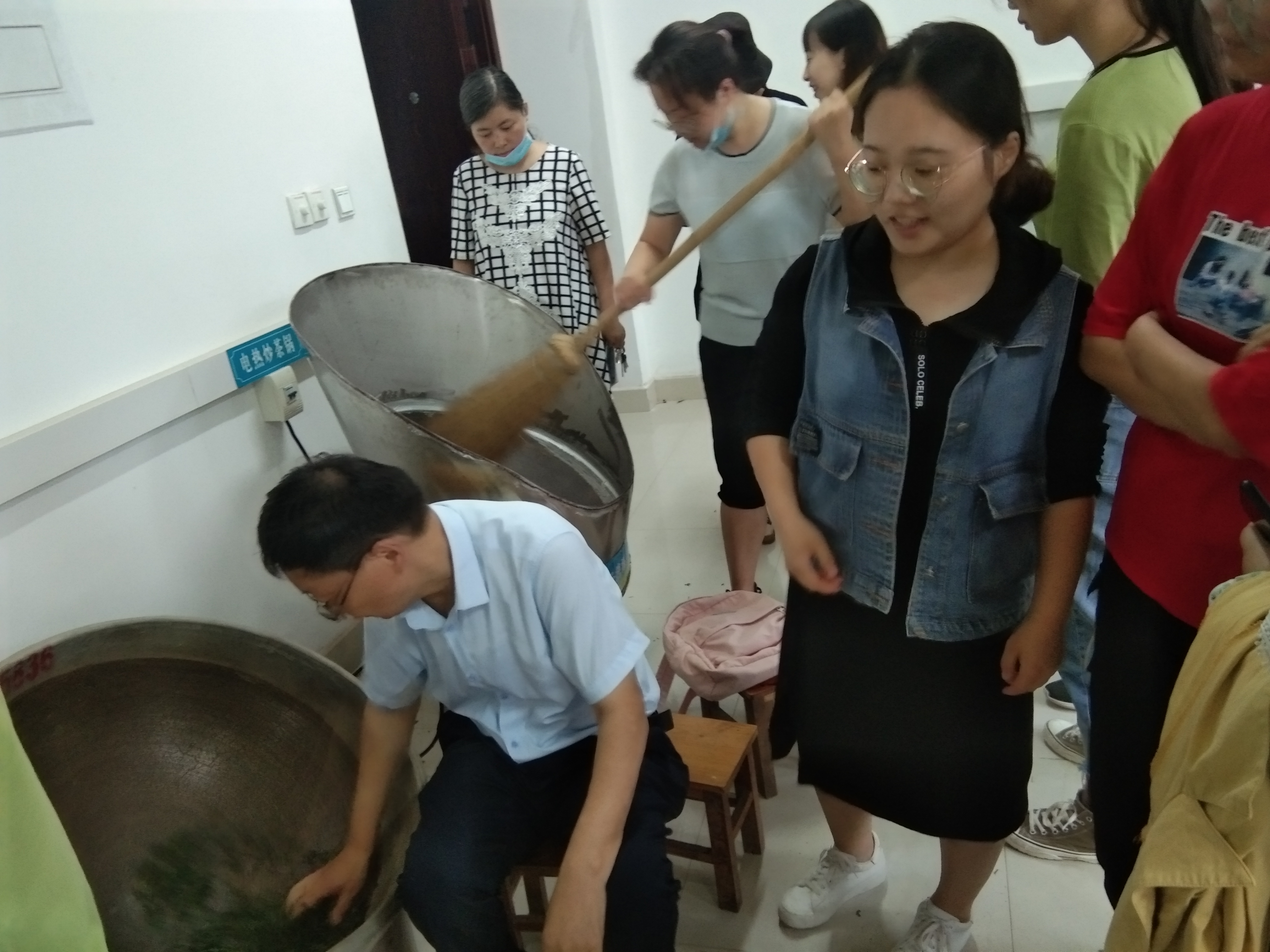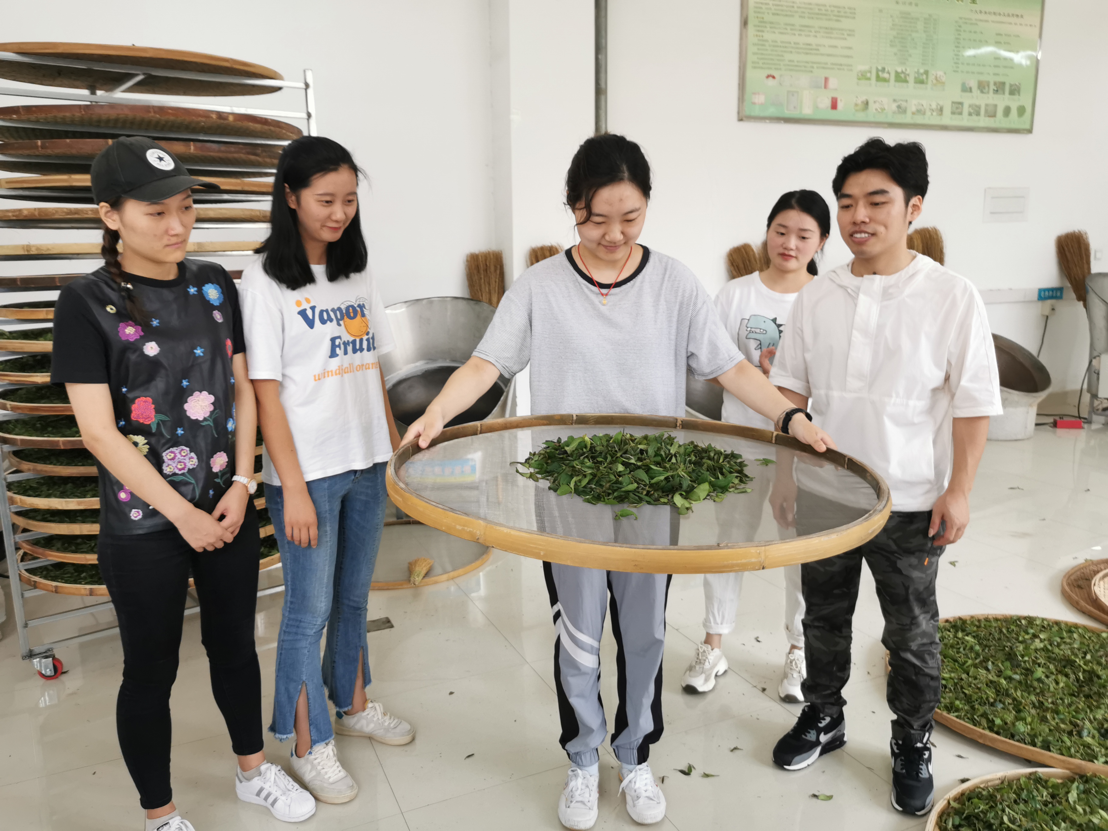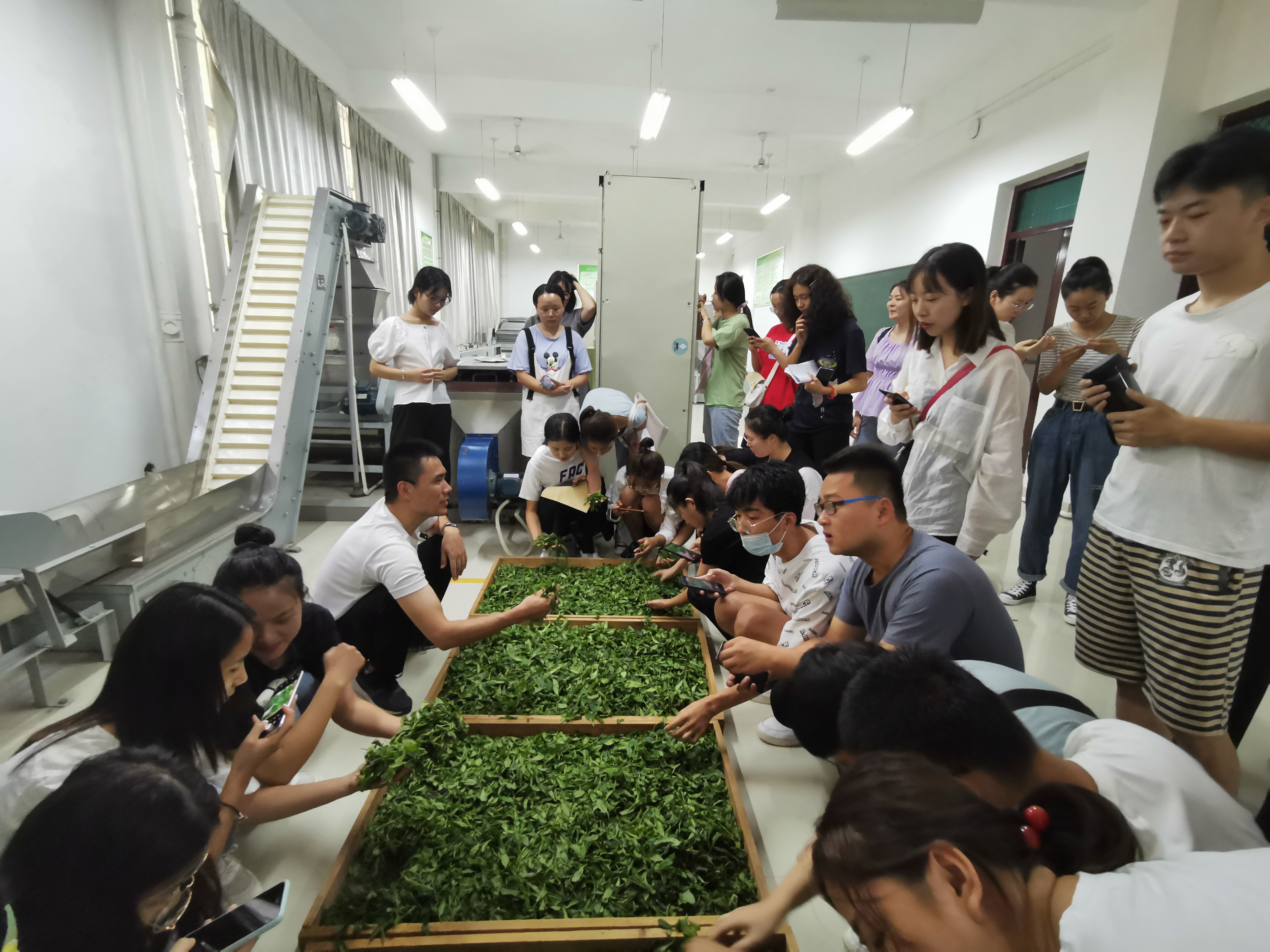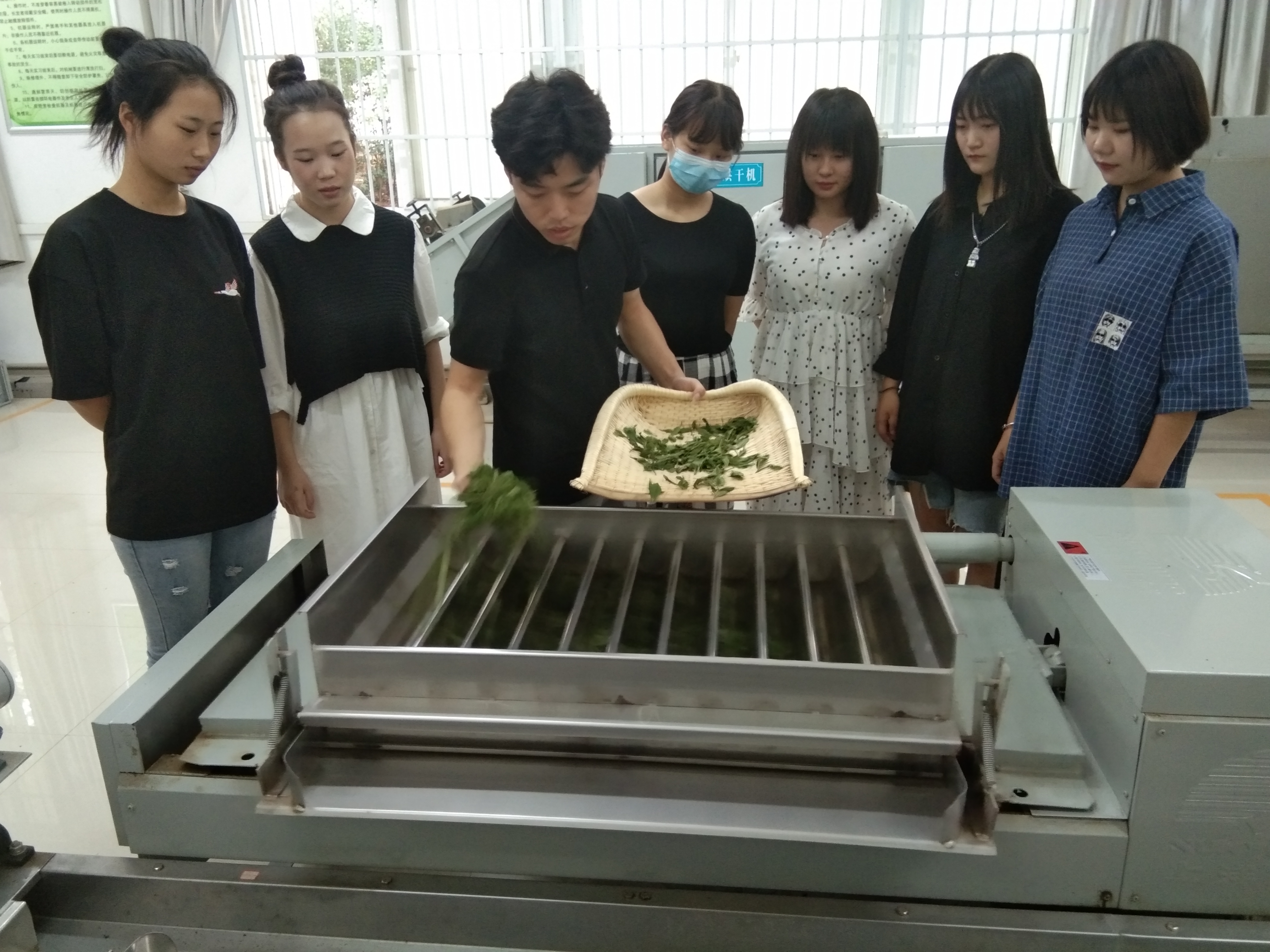 为丰富教学内容,强化学生实践技能的培养,今年我院利用郭桂义国家级技能大师工作室项目经费增添了龙井炒茶机制、碧螺春生产线,完善了半机械半手工信阳毛尖生产线。经教研室讨论,本次实习的内容主要包括:(1)大宗绿茶茶制作;(2)信阳毛尖茶制作;(3)龙井茶制作;(4)碧螺春茶制作;(5)乌龙茶制作;(6)红茶制作。为了保证实习效果,采用分班分组,教师演示、学生动手操作等实习方式,最后对所加工的茶叶进行分类审评。尽管生产实习很累,但大家纷纷表示受益匪浅,希望开展更多这样的生产实习。