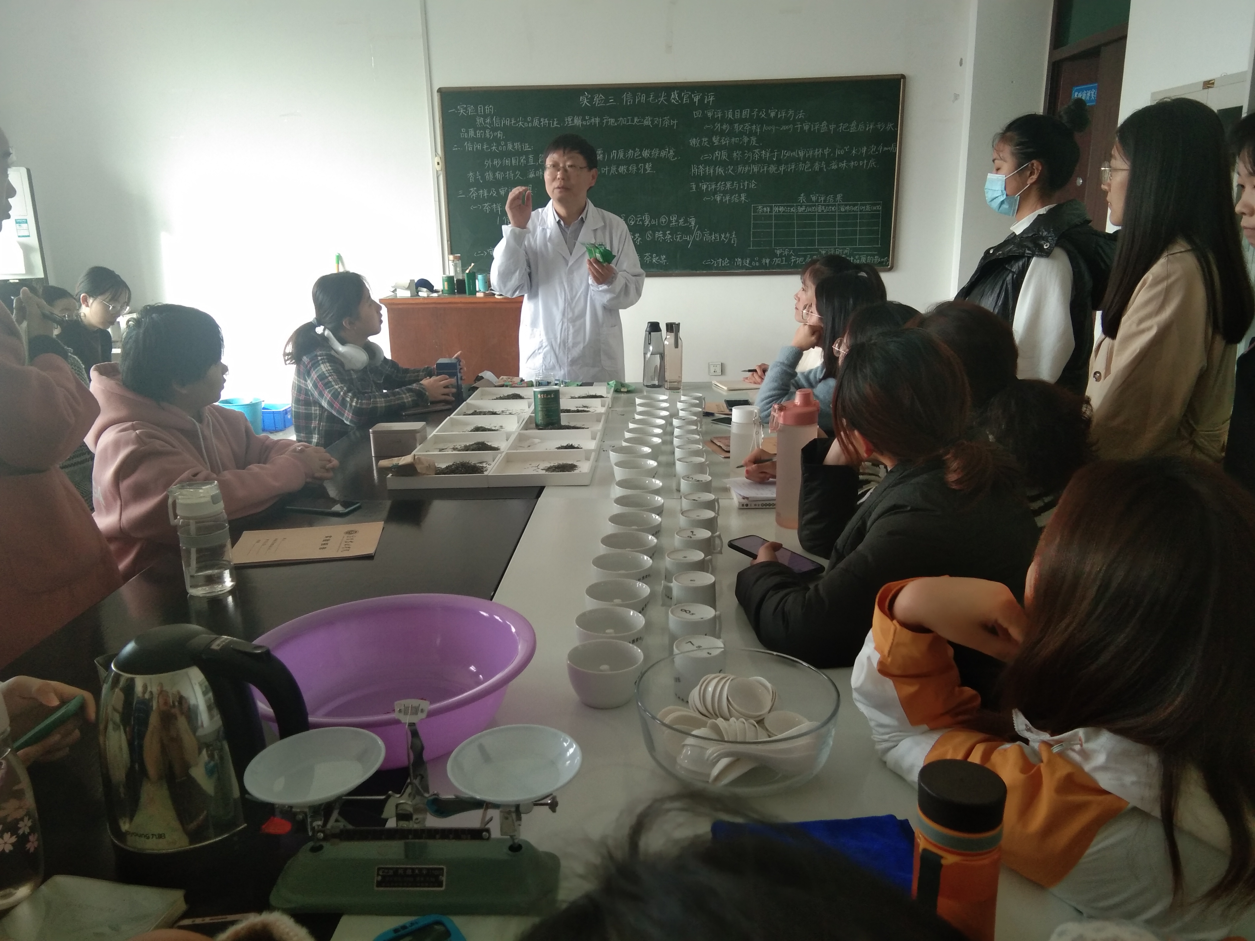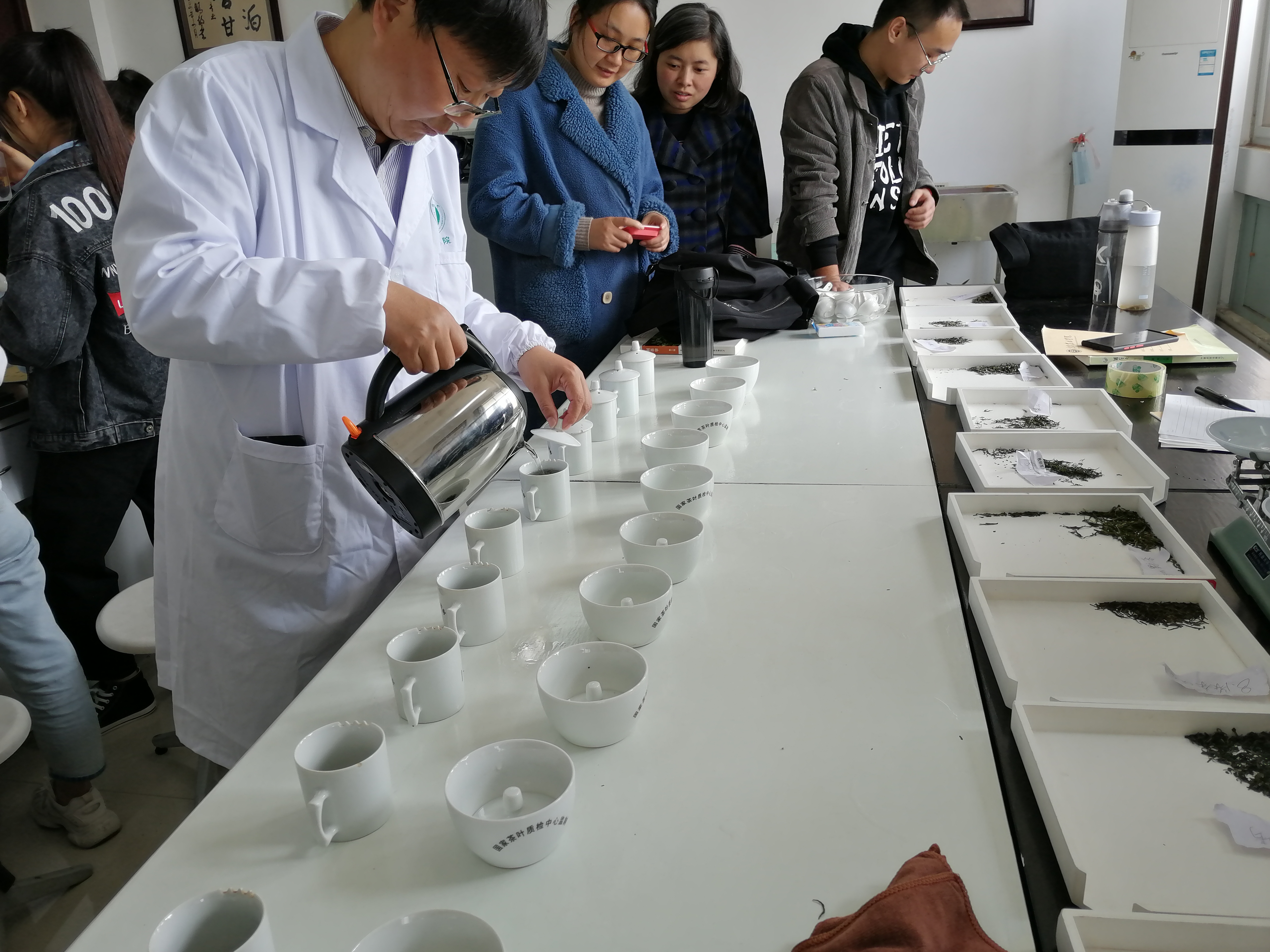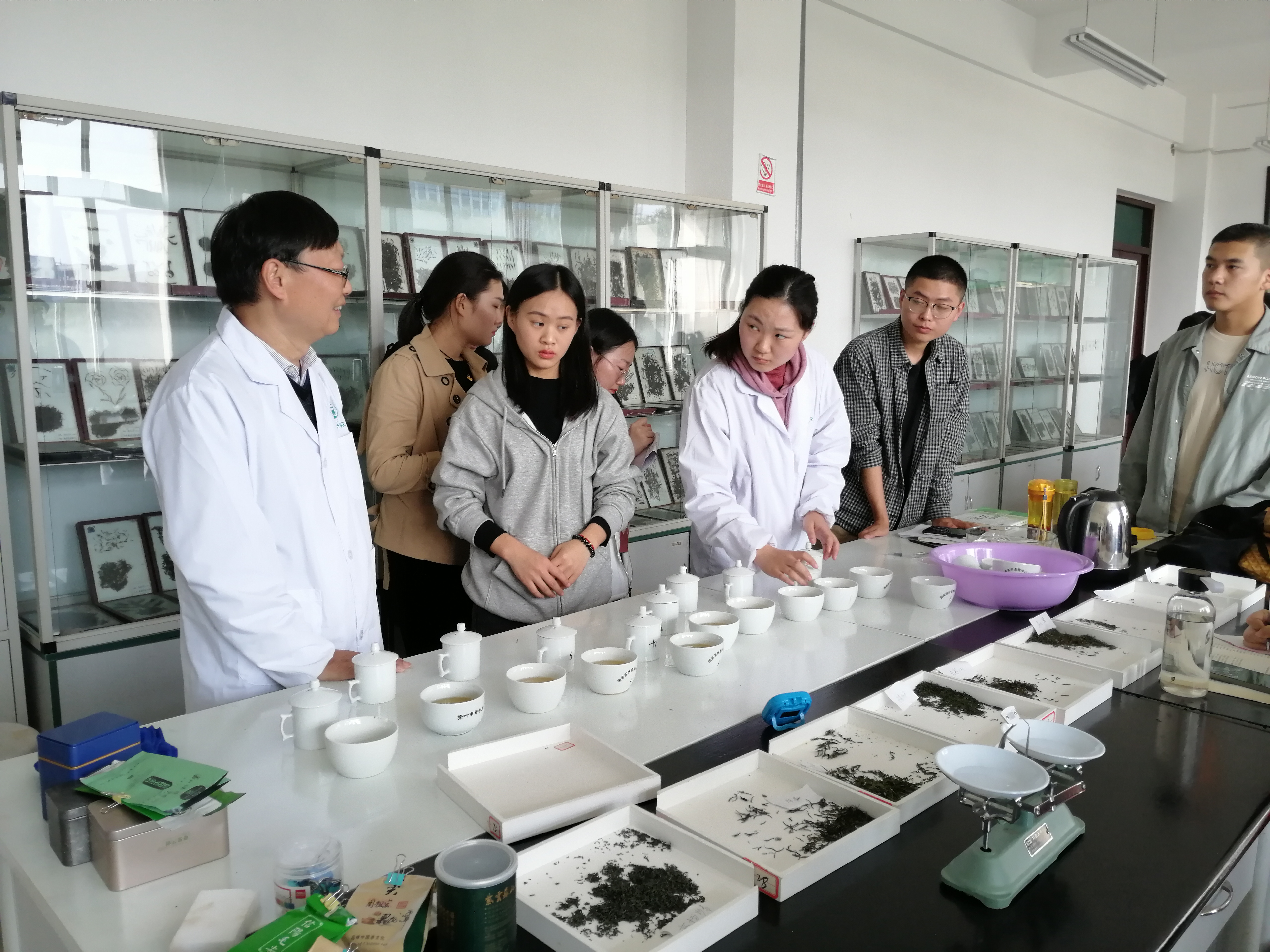 10月19日,茶学院教学副院长孙慕芳、教学秘书张永瑞、茶学教研室专任教师黄双杰、杨转、王晶晶对郭桂义教授主讲的《茶叶审评与检验》不同班级实验教学进行观摩督导。