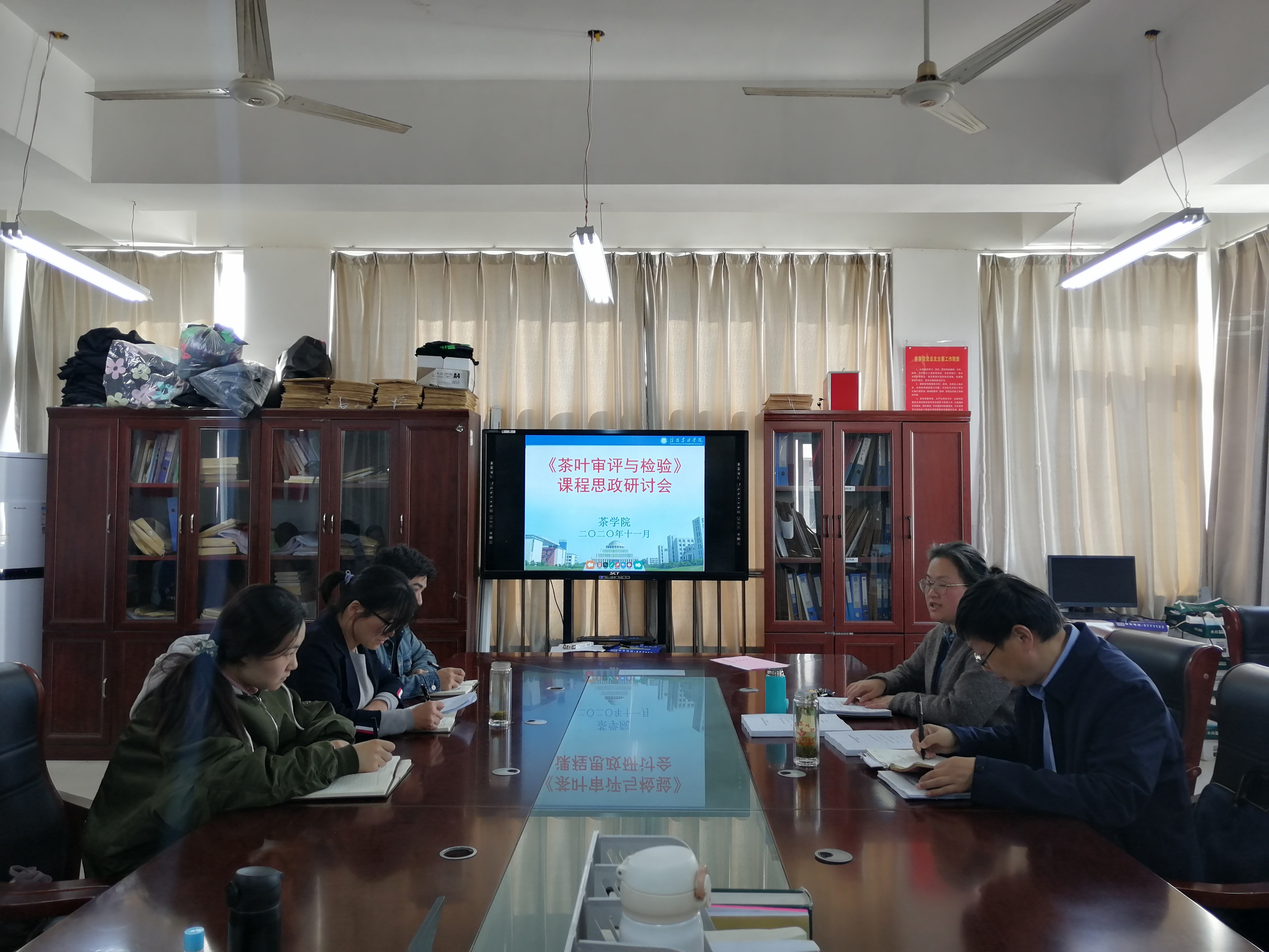 11月10日下午,《茶叶审评与检验》课题组在2C501召开“茶叶审评与检验课程思政”研讨会。课题组负责人郭桂义教授、成员孙慕芳副教授、张洁老师、辅导员朱尧老师及实验教师王晶晶参加了研讨,研讨论会由课题组负责人郭桂义教授主持。