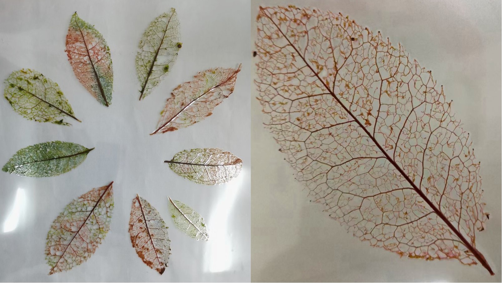 本次实习采用分班分组的方式。实习第一项内容为茶树叶片、花和果实结构观察,实习过程中,首先,教师通过展示和讲解茶树叶片切片的光镜和电镜照片对茶树叶片的组织结构和超微结构进行介绍,接着,教师对茶树叶片徒手切片法(横切、纵切)、茶树花粉粒观察方法、显微镜使用方法等进行演示,最后,学生自己制作切片并对茶树叶片气孔等结构进行观察,观察的同时,教师对学生进行分别指导,并引导其认识茶树各器官的结构特点;实习第二项内容为茶树叶片形态观察和叶脉标本制作,首先,教师对茶树叶片形态的观察方法及茶树叶片的叶缘、叶脉、叶尖等外形特征进行讲解,接着,学生对信阳10号、信阳群体种、福鼎大白、薮北种等茶树品种叶片进行观察,并统计和分析不同茶树品种叶面积、叶形指数、锯齿对数和叶脉对数等数据,进一步归纳总结茶树叶片形态特征及比较不同茶树品种间叶片形态差异,最后,教师引导学生制作茶树叶脉标本,通过观察标本,对茶树叶脉结构有了更直观的认识;实习第三项内容为茶树叶片叶绿素含量测定,叶绿素是茶树重要的生理指标,茶树叶片叶绿素含量与茶树的喜光耐阴等特点密切相关,在该实习环节,教师指导学生通过乙醇浸提和分光光度法对不同品种及不同老嫩度的茶树叶片叶绿素含量进行测定和分析,使学生掌握茶树叶片叶绿素的定量方法以及了解不同品种、老嫩度茶树叶片的叶绿素含量特征。以上实习内容加深了同学们对茶树器官解剖结构、叶片形态、生理特征等《茶树栽培学》理论知识的理解,同时提高了学生的动手能力和独立思考能力。