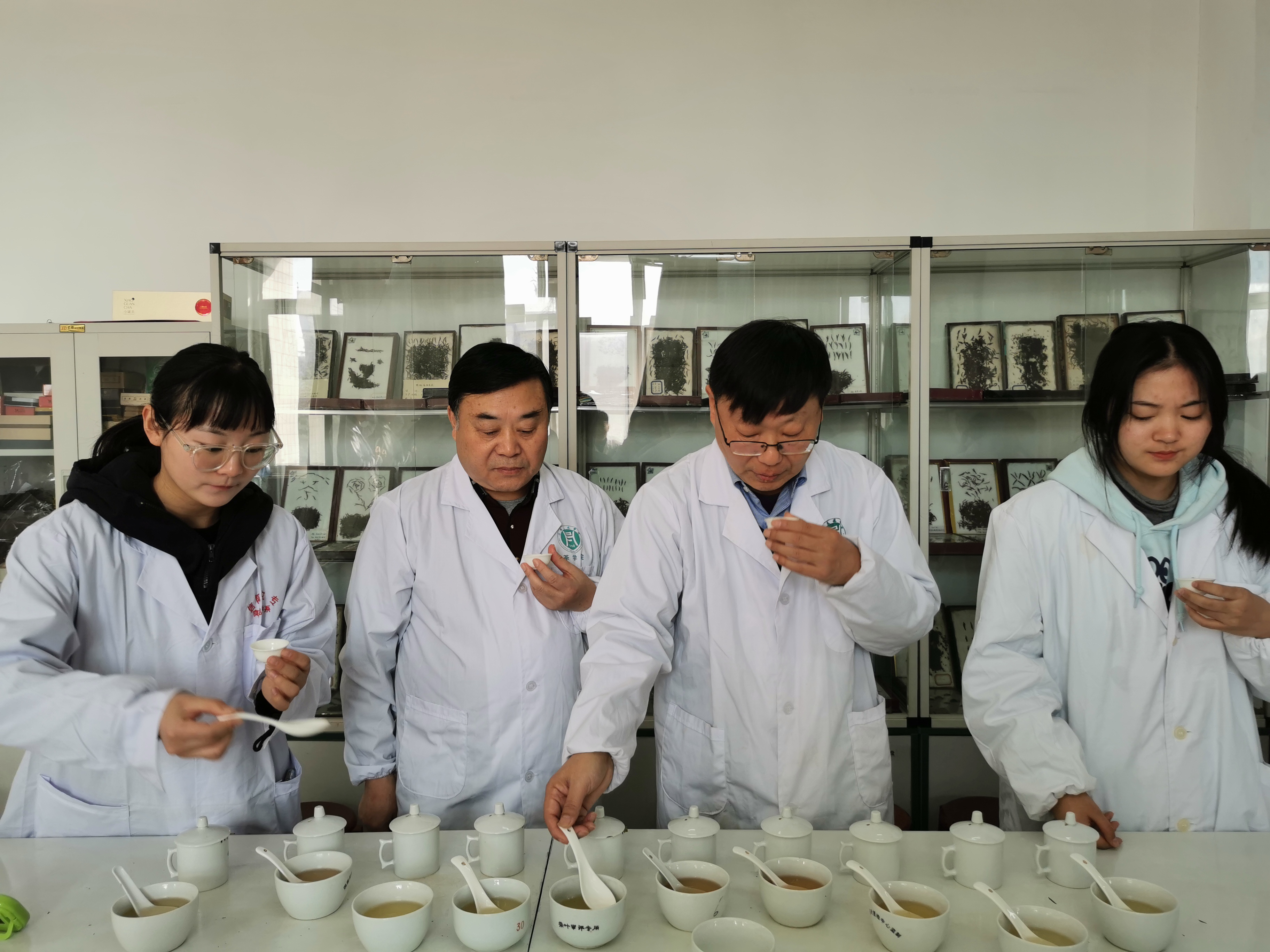 按照茶学、茶学(茶文化与营销)专业人才培养方案要求和《茶叶审评与检验》课程教学安排,茶学院针对2017级茶学(对本)、2019级茶学(专升本)64名学生从12月7日-12月11日开展为期一周的《茶叶检验与审评》实习。为加强实践教学,进一步推动茶学院实践教学发展,我院于12月9日邀请外聘教师信阳市茶产业发展中心高级农艺师张久谦和信阳市农业局高级农艺师扶晓现场指导《茶叶审评与检验》教学实习——“信阳毛尖茶感官审评”。一同参与指导的还有茶学院院长郭桂义教授和茶学院教师王晶晶等。