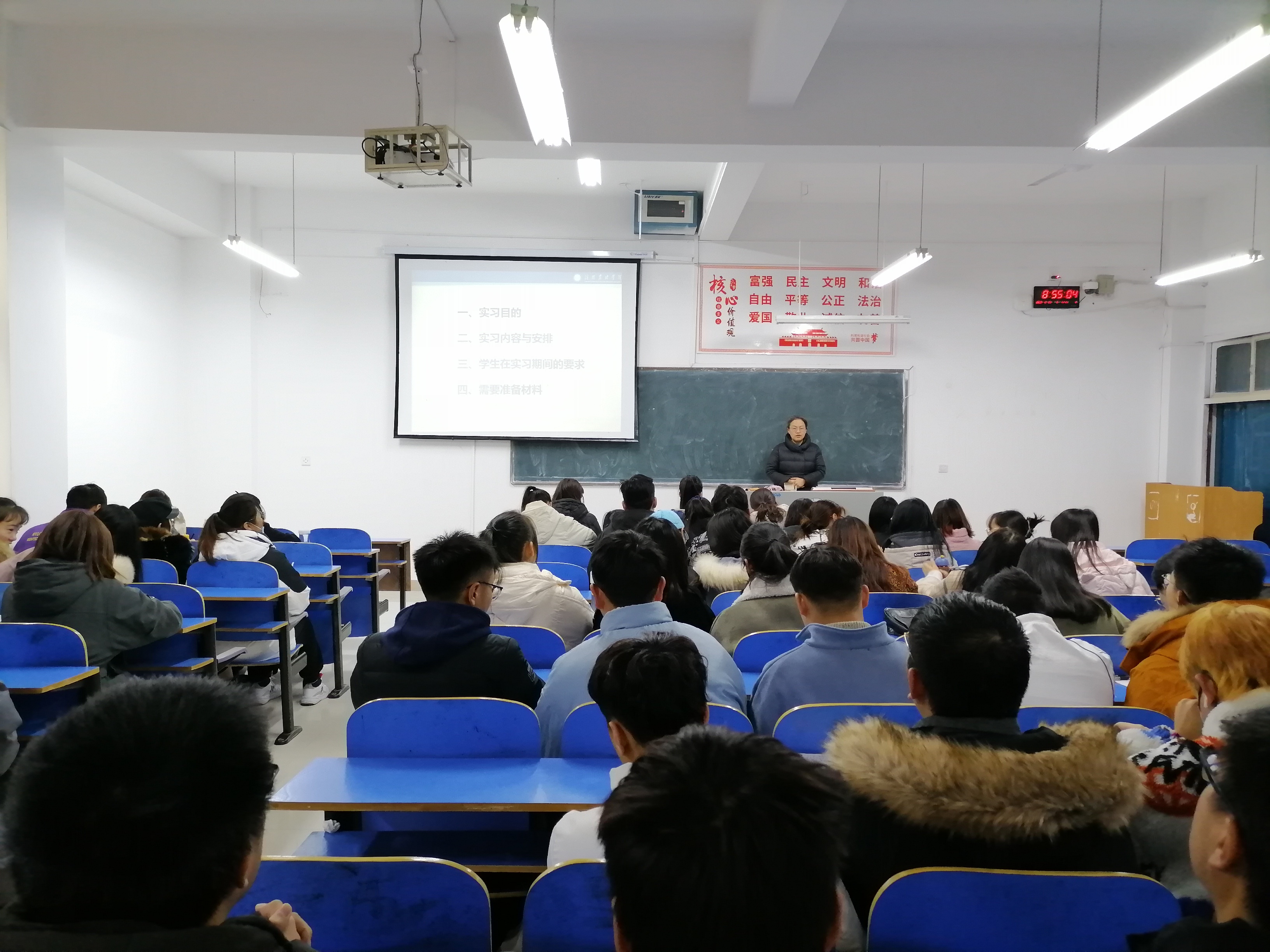 朱建梅对同学们的就业和安全进行了安排和强调,给同学们详细介绍了相关的就业政策和报到证办理、个人档案、就业协议书签订、就业信息上传等注意事项,要求同学们向辅导员、学院及时上报、上传就业信息等。同时对同学在实习过程中的纪律和实习安全进行了强调。最后她指出,实习是同学们大学生活最后一公里,同学们一定要充分认识到实习的重要性、加强责任和安全意识。