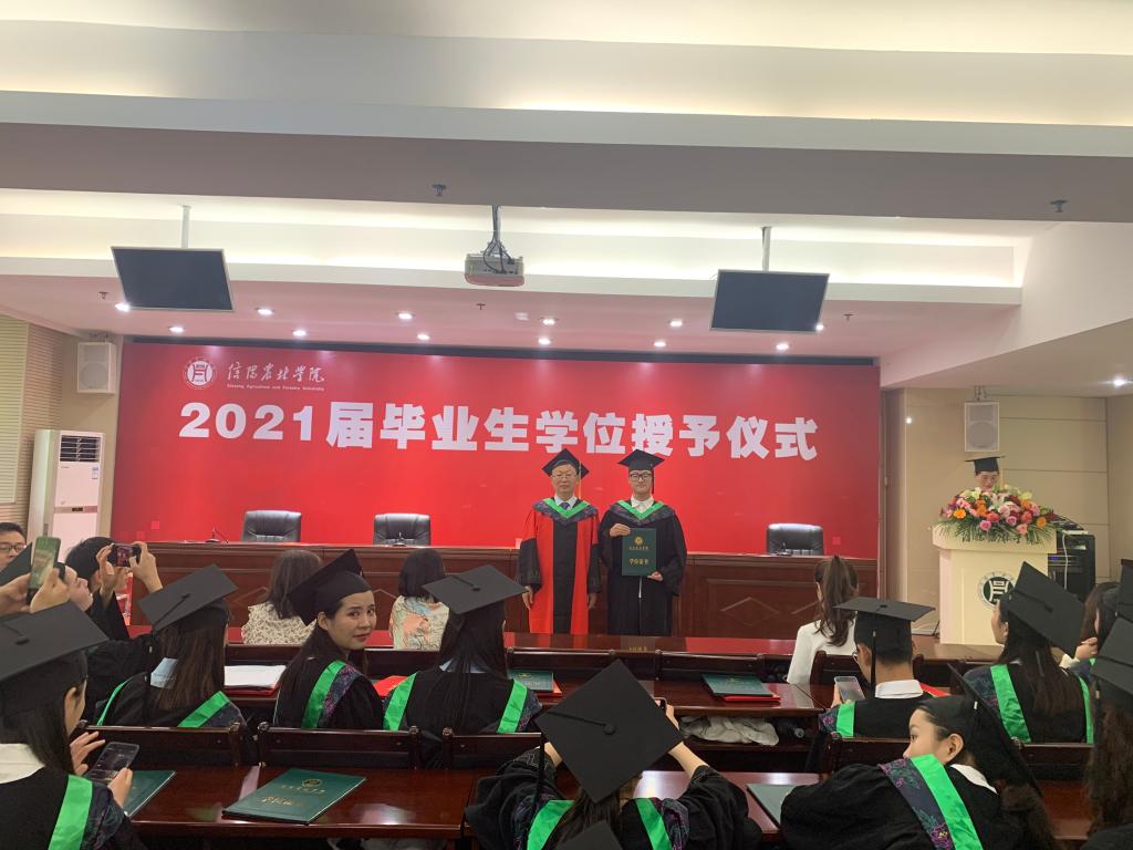 6月7日上午,茶学院2021届毕业生学位授予仪式在行政楼一楼会议室隆重举行。茶学院院长、党总支书记郭桂义、副书记朱建梅、副院长孙慕芳、陈义,教师代表、2021届毕业生及在校生代表参加了本次学位授予仪式。仪式由党总支副书记朱建梅主持。