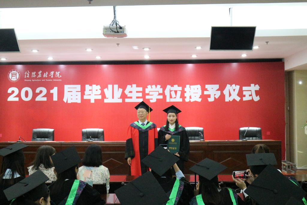 副院长陈义宣读了茶学院2021届优秀应届毕业生名单,学院领导为2021届优秀应届毕业生颁发了荣誉证书。茶学院学位评定分委员会副主席、茶学院副院长孙慕芳宣读了2021届本科毕业生学士学位授予决定,beat365在线平台官网学位评定委员会委员、茶学院学位评定分委员会主席、茶学院党总支书记、院长郭桂义教授为2021届茶学本科毕业生颁发学位证书并拨流苏。