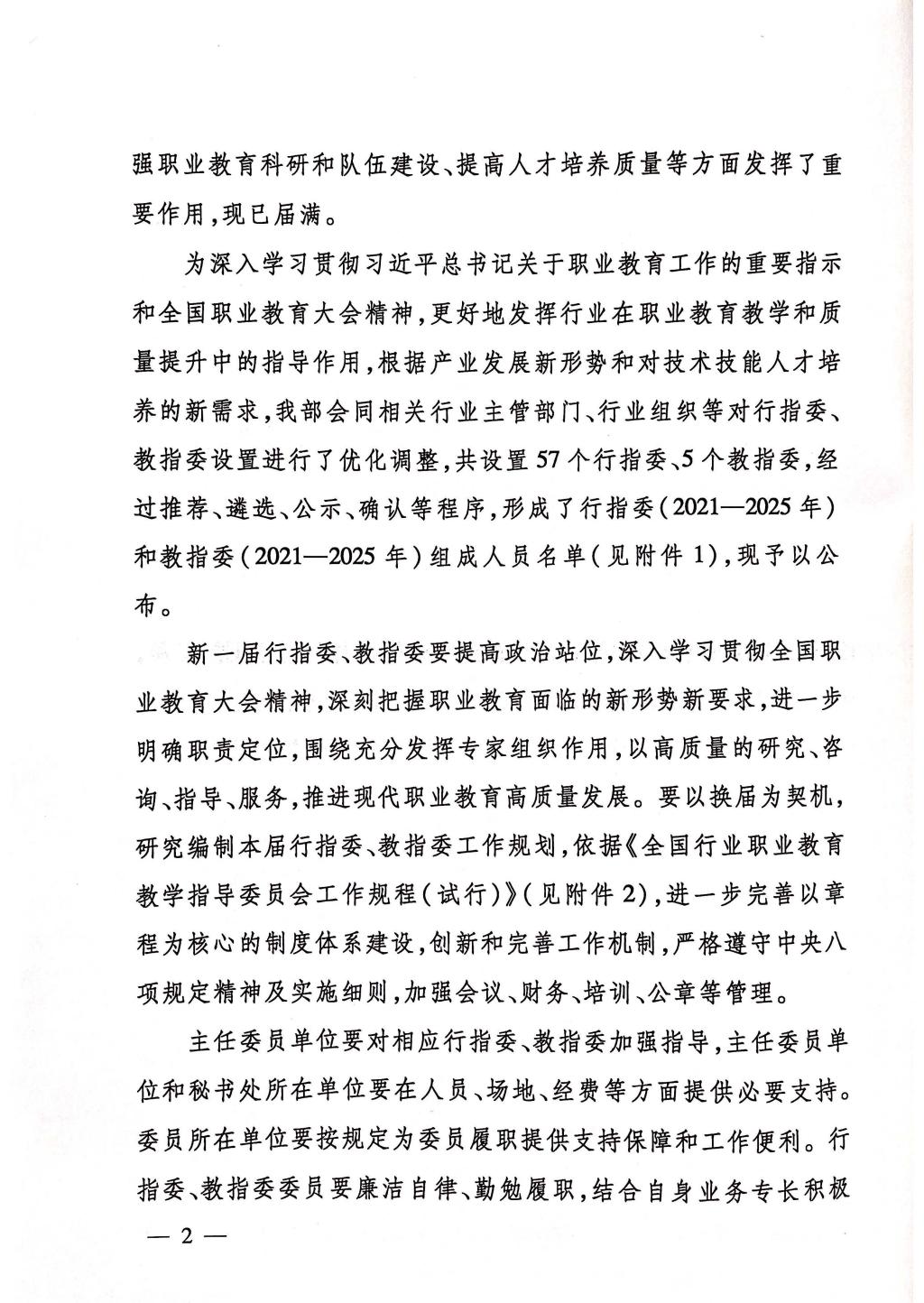 为深入学习贯彻习近平总书记关于职业教育工作的重要指示和全国职业教育大会精神,更好地发挥行业在职业教育教学和质量提升中的指导作用,根据产业发展新形势和对技术技能人才培养的新需求,教育部会同相关行业主管部门、行业组织等对行指委、教指委设置进行了优化调整,共设置57个行指委、5个教指委。委员遴选坚持专业性、高标准,兼顾区域分布,经推荐、初选、征求相关方面意见、复核、公示等程序,共产生来自行业企业、职业院校、普通本科高校和研究机构等单位的3813名委员,其中既有高层次科技领军人才,也有各行业大国工匠,其中正高级职称专家占比超过50%,行业专家、劳动模范、技术能手等行业企业高技能人员占比超过30%,充分凸显了职业教育专家组织特色。