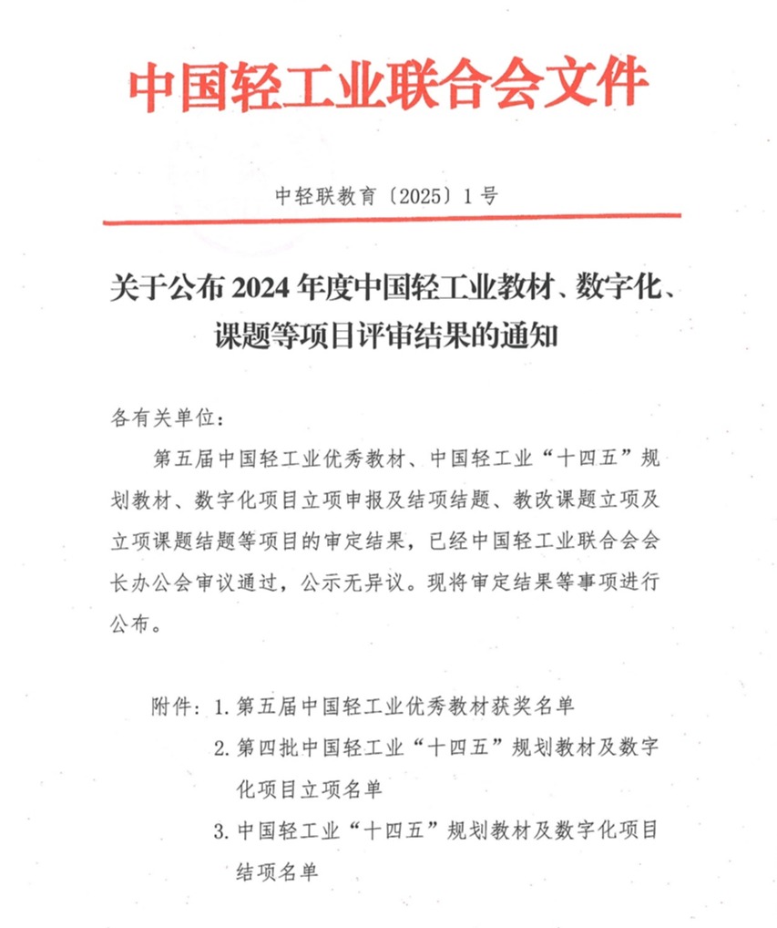 茶学院高度重视教材建设工作,积极鼓励教师探索教学内容与方法的创新,此次教材的成功入选,充分肯定了学院教师的教育教学成果,对深入推动茶学院教材建设和教学改革工作发展,提高人才培养质量具有重要意义。(撰稿/张向娜 图片来源于中国轻工业联合会官网)