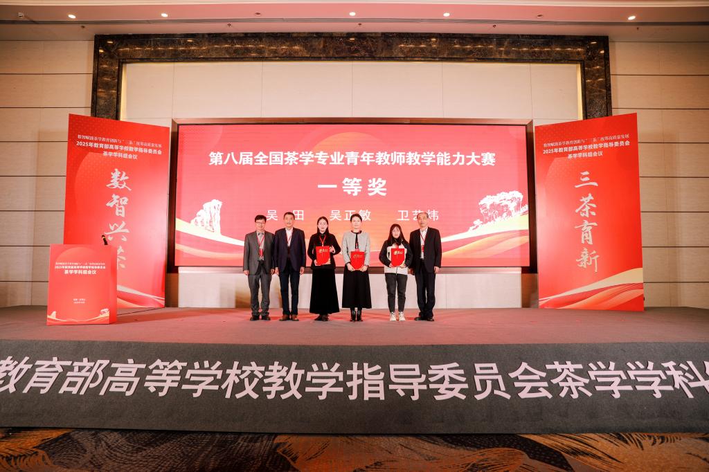 会议期间,茶学院积极参与学术交流,展现了学院的学科实力与办学特色。郭桂义应邀主持主题报告会,并作《茶文化遗产的保护与传承》专题报告,孙慕芳以《地方应用型高校茶学学科专业建设的主要做法——以beat365在线平台官网茶学院为例》为题,系统介绍了茶学院在应用型茶学人才培养、学科建设与服务地方产业发展方面的创新举措与成功经验。卫艺炜获得第八届全国茶学专业青年教师教学能力大赛一等奖,并上台接受颁奖。
