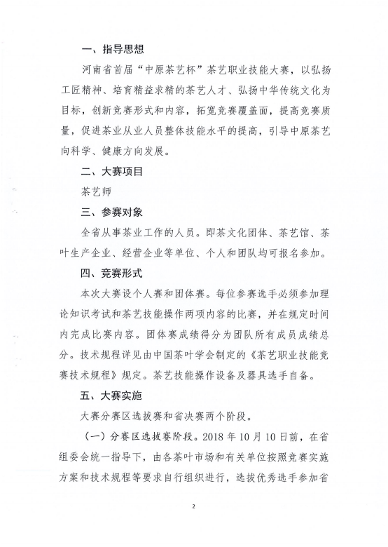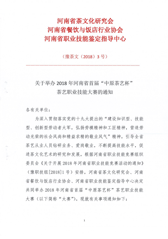 2018年河南省首届“中原茶艺杯”茶艺职业技能竞赛通知文件