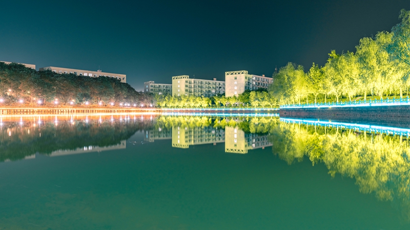 近年来,学校以创建省级文明校园标兵为目标,着力优化校园文化建设硬件设施,根据校园建设规划,按照生态引领、水脉贯通,编制校园山、水、园、林生态网络,打造山水园林校园。在校园主干道博学路、笃行路两侧铺装人行道,方便师生学习生活;在学校南大门、楚韵湖、莲池、图书馆后山进行景观亮化,提升校园环境;在楚韵湖北岸修建栈道,提升校园品质。