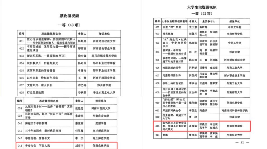 近日,河南省社会科学界联合会、共青团河南省委、河南省高等教育学会联合发布了《关于公布2025年度河南省大思政微课(微视频)征集活动评选结果的通知》(豫社科联字〔2025〕22号)。经评审,我院推荐选送的两项参赛作品分别获得思政微视频一等奖和大学生主题微视频一等奖。