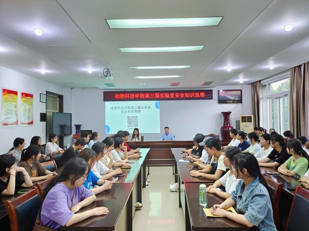 根据《河南省安全生产委员会办公室关于印发<2023年河南省“安全生产月”活动方案>的通知》要求及学校关于开展“2023年实验室安全生产月”活动相关安排,为切实加强我院实验室安全管理,推进实验室安全文化建设,强化师生的实验室安全意识,营造安全文化氛围,2023年6月6日,动物科技学院举行了第三届实验室安全知识竞赛。