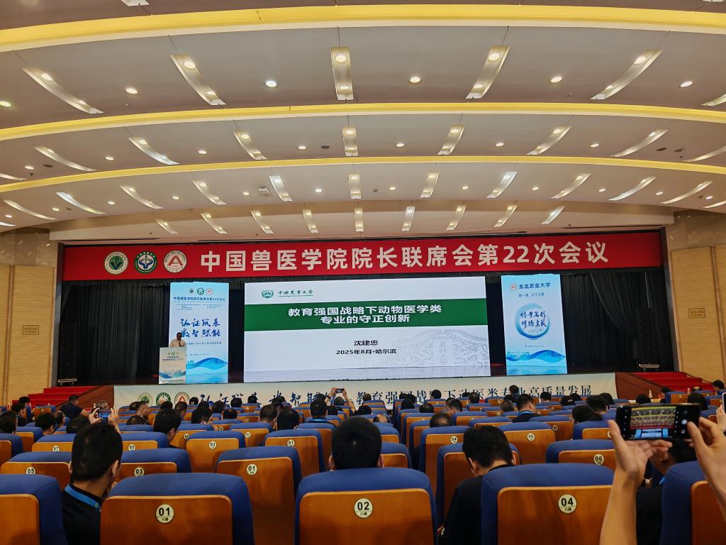 为不断深化教育科技人才一体改革,全面提高兽医人才自主培养质量,2025年8月17日-19日,中国兽医学院院长联席会第22次会议在哈尔滨召开。会议由中国兽医学院院长联席会、教育部高等学校动物医学类教学指导委员会和中国兽医协会联合主办,教育部动医实践教学研究虚拟教研室、兽医外科学课程虚拟教研室协办,东北农业大学承办。会议主题是“认证筑基 数智赋能-教育强国战略下动医类专业高质量发展”。动物科技学院院长邓凯伟和动物医学教研室主任曲哲会参加了本次会议。