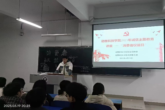为了进一步推进我院国家资助政策宣传工作,加大学生资助政策宣传力度,使国家学生资助政策深入人心,动物科技学院资助服务部联合权益保障部于3月13日在一教C402举办“资助育人,助力成长——消费者权益日”主题校园资助诚信宣讲活动。