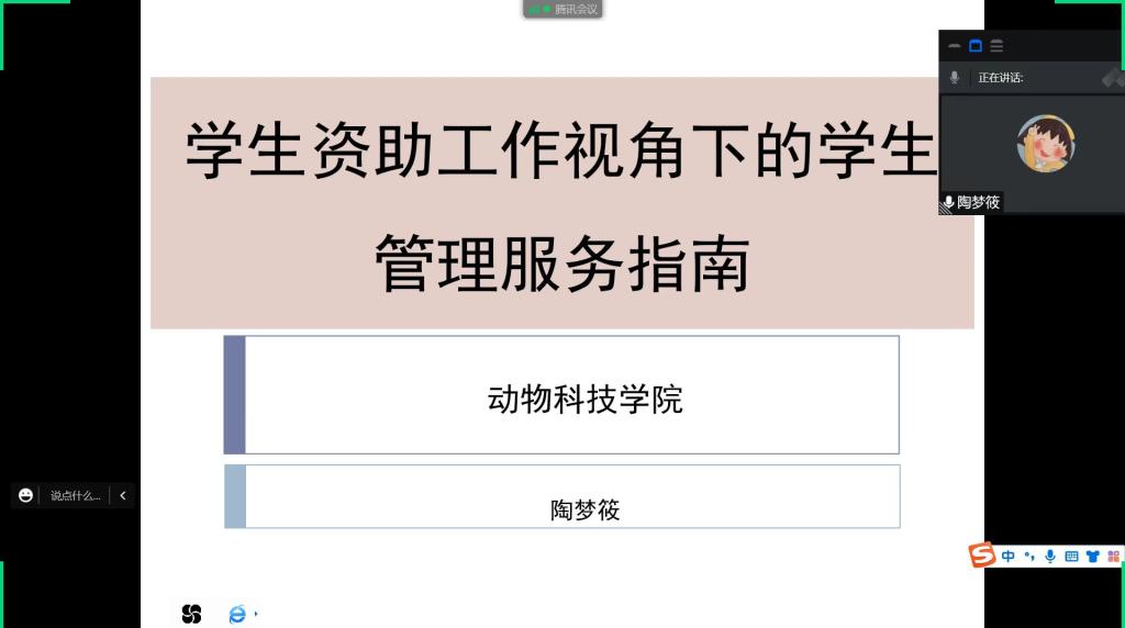 9月13日,动物科技学院举行新生入学教育——大学生资助政策专题讲座。参加讲座的是我院2022级全体新生,在讲座中我院资助专员陶梦筱老师介绍了国家“不让一名学生因家庭经济困难而失学”的政策,详细讲解了国家奖助学金、校园奖助学金、助学贷款的相关政策与申请流程。