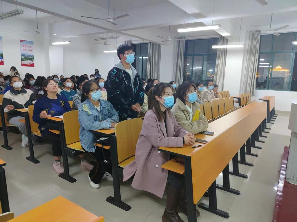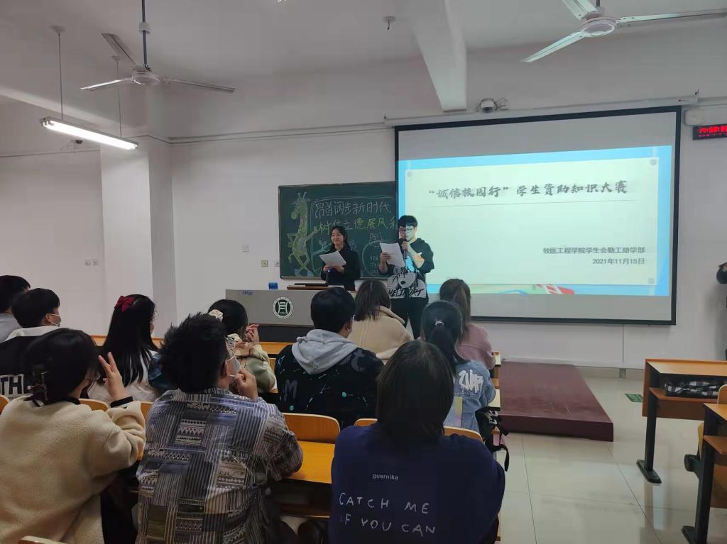 2021年11月15日,牧医工程学院在二教307举办“昂首阔步新时代,树信立德展风采”为主题的“诚信校园行”学生资助知识大赛,我院张晒老师和麻冰洁老师出席活动并担任评委,2021级新同学到场观看比赛。