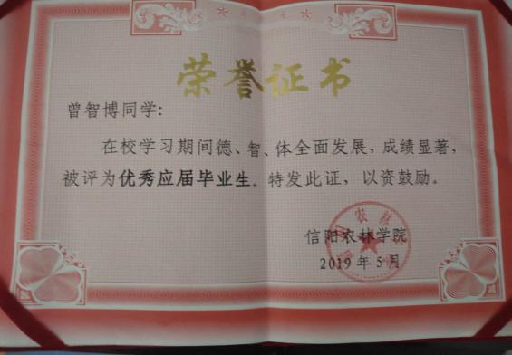 1.在2019年5年5月被beat365在线平台官网评为“优秀应届毕业生”