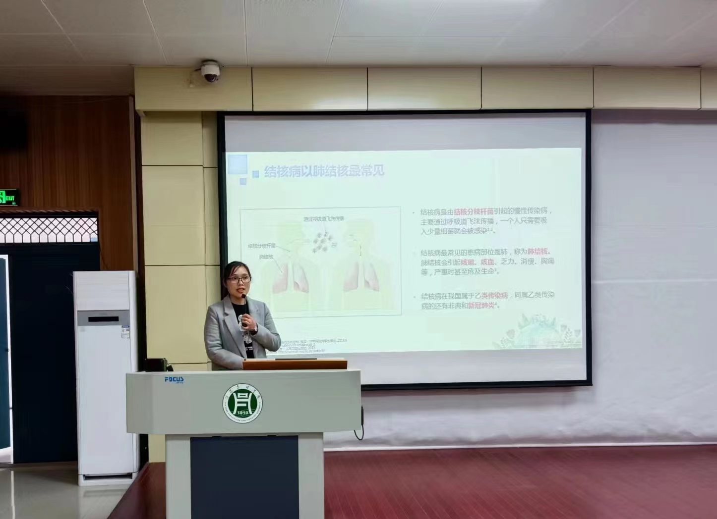 为加强学校结核病等传染病防治工作,强化结核病防治知识宣传,在世界防止结核病日到来之际,动物科技学院红专学堂特联合市疾控中心于二教204举办2023年世界防治结核病日宣传讲座。