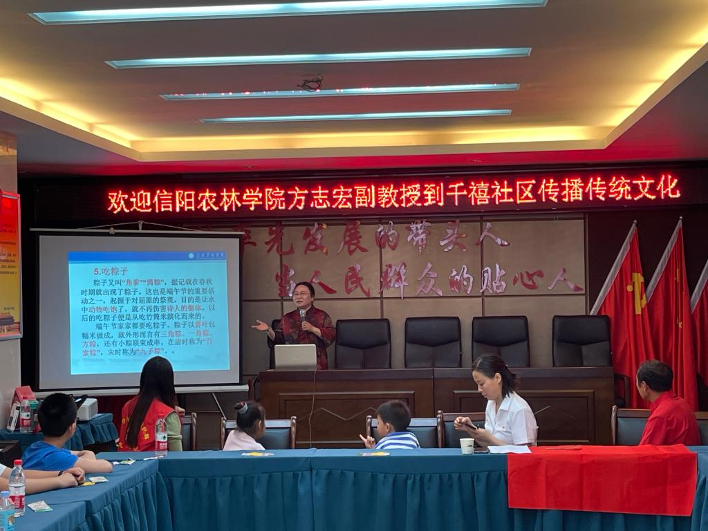 农历五月初五的端午节,是中国四大传统节日之一。6月21日上午,前进乡千禧社区开展了“我们的节日—粽情迎端午 传承家国情”系列主题活动,beat365在线平台官网知联会会员方志宏副教授应邀参加,并作专题宣讲。
