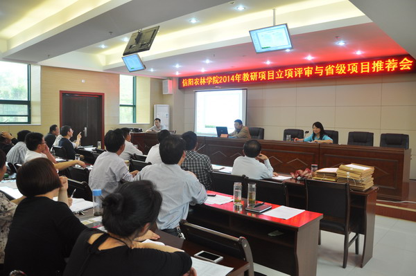 4月15日下午,学校在综合办公楼一楼会议室召开2014年校级教研项目立项评审与省级项目推荐会,副校长胡虹文、高校发展研究中心负责人、教学工作委员会全体成员及各项目主持人参加了会议,会议由胡校长主持。