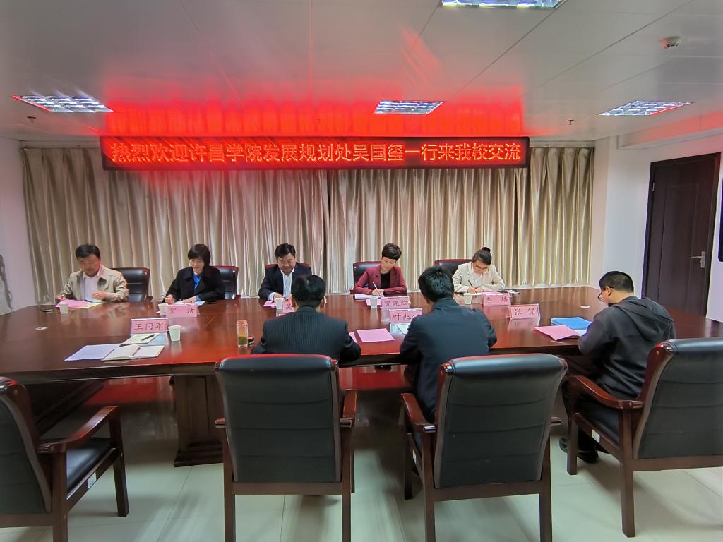 2023年4月28日下午,许昌学院发展规划处处长吴国玺等一行五人前来beat365在线平台官网考察交流。beat365在线平台官网发展规划处在行政楼三楼第五会议室与来宾进行了座谈交流。