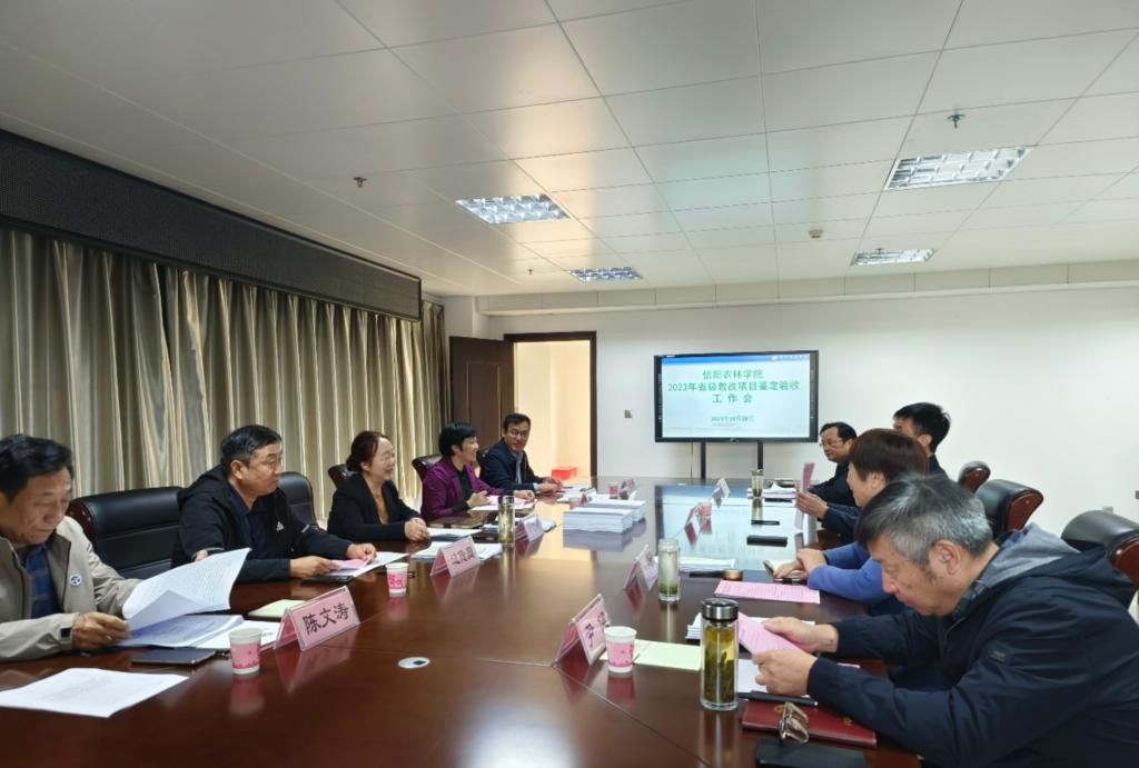 2023年10月20日上午,在学校行政楼第五会议室召开了省级教改项目鉴定工作会。鉴定委员会专家成员由河南工学院副校长刘莉莉教授、信阳职业技术学院副校长郑延芳教授、河南牧业经济学院教务处处长边传周教授、河南工学院教务处处长郑先锋教授、信阳学院教务处长陈文涛教授及beat365在线平台官网农学院院长尹健教授、信息工程学院院长商信华教授组成,发展规划处(教研中心)等职能部门、各项目负责人及相关工作人员参会。鉴定会由鉴定委员会主任委员刘莉莉教授主持。