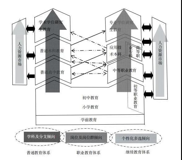 多年来社会上最熟悉的是普通教育体系,现在九年义务教育阶段依法淡化了升学选拔竞争,但到普通高中、普通本科、学术型硕士博士,所谓“千军万马过独木桥”,就挤在这条通道上。从全民终身学习的理念出发,这一状况正在逐渐改变。党的十八大以来,在国家政策层面对中等职业教育以后的通道向上延伸,既有专科层次高等职业教育,也有应用技术本科,还有专业型学位研究生,都是广义的职业技术教育体系。同时,学校和社会各界愈加重视继续教育体系,多样化非学历教育培训势头很好,认可多种学习成果的学分银行试点也初见成效。