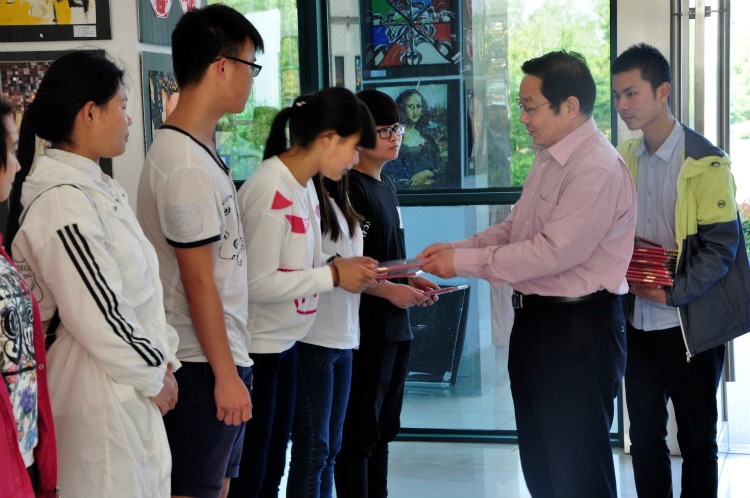 仪式上,黄泽平老师宣读了获奖学生名单。随后,由学院老师为获奖同学颁奖,其中14级环境艺术设计二班常星星同学荣获收藏奖,其作品被分别赠予马来西亚南方大学学院、澳大利亚莫道克大学。最后,胡院长就本次颁奖活动作总结发言,教导同学们要善于发现生活之美并将它们应用到作品中,他对常星星同学的作品给予了很高评价,激励15级同学以其为榜样,争取来年展出更具特色的作品。