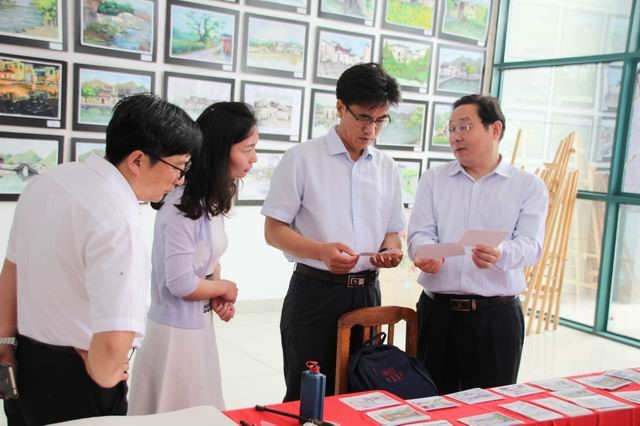 6月14日上午,副校长赵一鹏到教二楼参观规划与设计学院师生写生作品汇报展,规划与设计学院院长胡正元、副书记王国艳以及相关专业教师陪同参观。