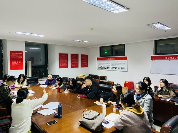 随后,环境设计教研室主任徐曼老师针对目前校企活动的实施开展以及课程改革所面临的一系列问题组织大家商讨。教研室全体教师在会议中对课程教学分析、教学成果落地、教师进修等问题进行了深入探讨。