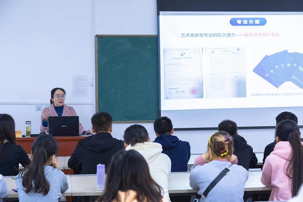 上午,在二教503教室徐曼老师从专业介绍、师资队伍、教学设施及特色、人才培养方案、成绩考核标准、实践教学、就业去向、作品赏析等方面详细地向同学们介绍了专业的基本情况和要求,分析了家具艺术设计专业的现状以及发展前景,让大家对自己的专业有更深刻的认知。老师勉励同学们要明确学习目标,端正学习态度,合理运用学习方法并有所成,让自己的大学生活充实而有意义。