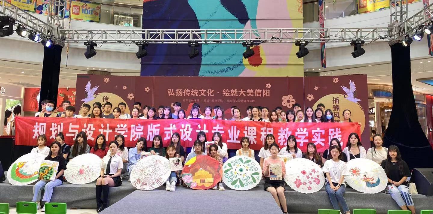 2021年6月20日,规划与设计学院教师刘昂、黄琳清带领2019级视觉传达设计专业学生赴信阳市万达广场开展《版式设计》专业课程教学实践。此次课程实践以“弘扬传统文化 绘就大美信阳”为主题,将专业实践实战化,以弘扬传统文化为根基,培养学生在了解中国传统文化知识、信阳地域特色基础上与运用版式设计方法与形式美法则,凝练新的视觉元素,进行有机的排列组合,来呈现新的设计表达。将思政内容,寓教于学,寓思政于专业,发挥专业课程隐性育人的作用。