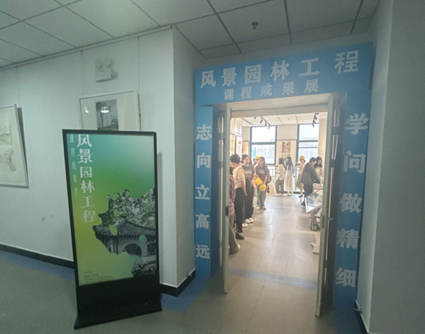 6月4日,风景园林专业依托专业课程《风景园林工程》在文学艺术楼602展厅举办教学成果展,风景园林艺术学院党总支书记张广强、院长胡正元、教学副院长葛晖、科研副院长张志锋、风景园林教研室主任郭雨及风景园林专业教师参加开幕仪式。本次教学成果展出的内容主要包括场景化教学实践内容、专业教育课程思政以及相关课程项目成果,由梁涛、李安妮两位老师指导,2021级风景园林专业全体学生共同完成。