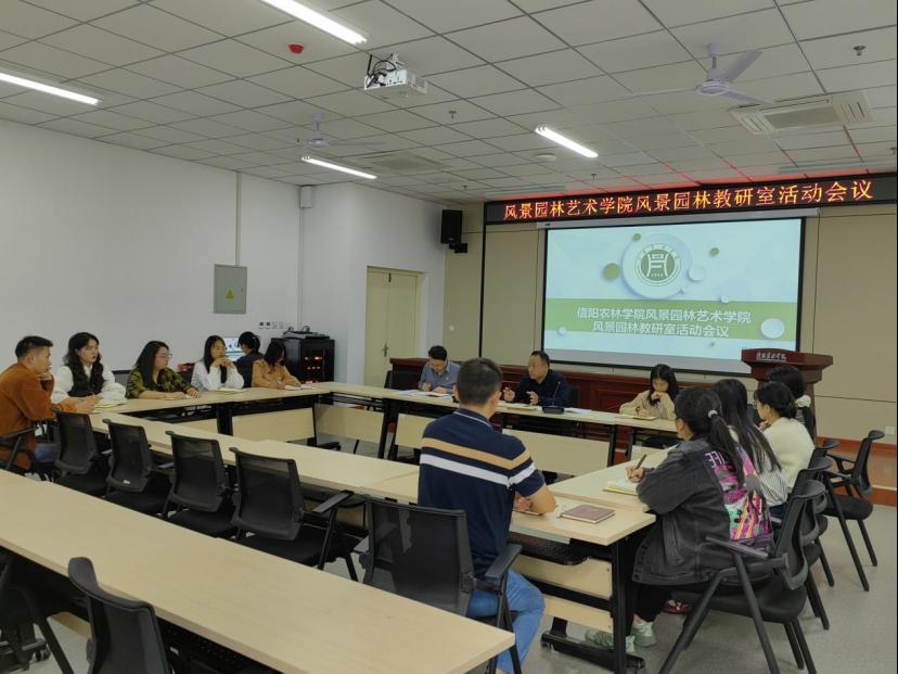 10月15日下午,风景园林教研室在文学艺术楼202会议室召开教研室工作会议,会议由风景园林教研室主任郭雨主持,副院长张志锋及全体教师参与。