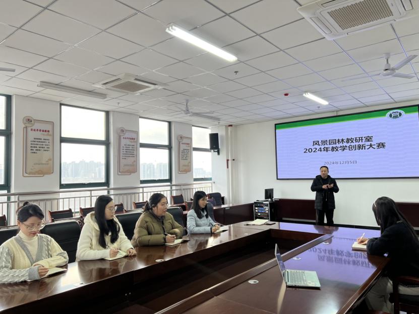 为提升教师专业素养,夯实教师教育教学能力,12月5日下午,风景园林教研室在艺术楼702会议室开展教学创新大赛,大赛由教研室主任郭雨主持。