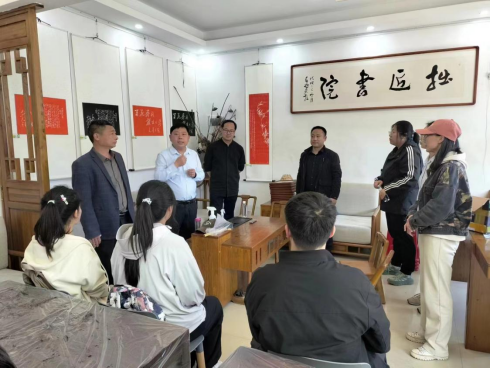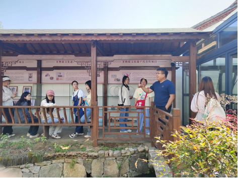 在实践教学过程中,明港镇乡村振兴发展中心杨主任首先向同学们介绍了新集村的基本概况、乡村规划及产业发展,并且带领同学们考察了全村风貌。接着,课程组老师带领大家来到新集村史馆和非遗馆进行参观,文化长廊内采用固定陈列、图文和实物相结合的方式展示出根雕、刺绣、书法、皮影戏、皮影制作等百余件艺术类和手工类作品。同学们认真听取课题组老师讲解关于在乡村景观规划中如何进行文化遗产创造性转化与创新性发展。随后,同学们又考察了拙匠书院、酿酒坊、磨坊、拓印坊、擂坊、艺坊等地,依托现场勘探拍摄和访谈交流等方法,对村落肌理、生态斑块、民居建筑、景观环境、民俗文化、特色产业等方面展开探究,从中发现经验借鉴与现状问题。