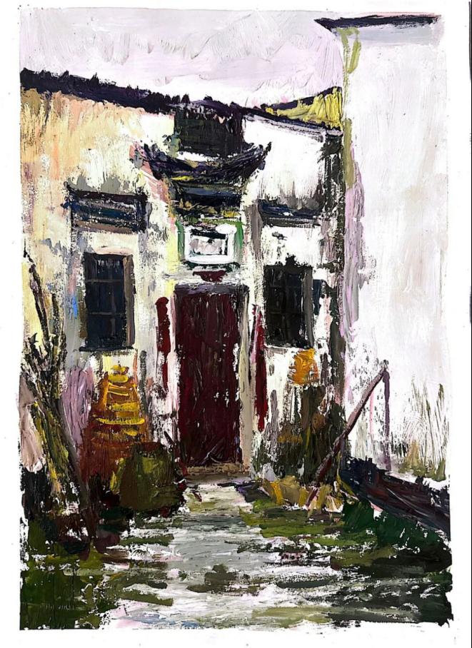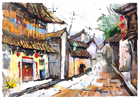 在此期间,同学们成为画中风景,感受艺术本身,在专业老师的指导下对宏村、西递、理坑、篁岭景点的徽派古建筑群、乡村景观与风土人情进行取景考察,自然生命的律动、古建筑群的韵律古朴之美,与大自然浑然天成的色彩搭配,这些都是在教室中看着图片创作所感受不到的体验。师生们仔细观察、用心体会、沉浸其中,将自然风光与风土人情融合作品之中,创作出独具特色的绘画艺术作品,提升了自己的专业素养。