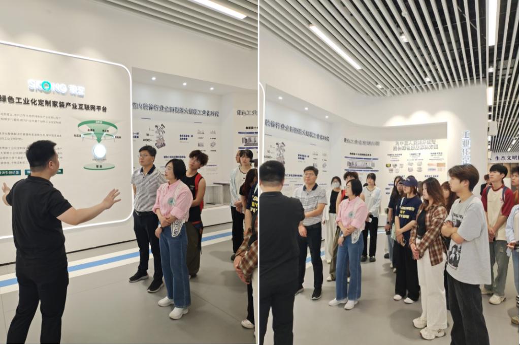 为深入了解装饰材料市场动态及施工工艺最新发展趋势,提升专业实践能力,风景园林艺术学院环境设计专业《装饰材料与施工工艺》课程组于5月28日赴万华生态新家装(信阳)有限公司、信阳市建材港开展实地调研活动。课程教师姚令华、徐曼、许大勇和2023级92名学生参加了本次活动。本次调研聚焦绿色家装、新材料应用及智能化施工技术,为教学与设计实践提供了宝贵的一线资料。