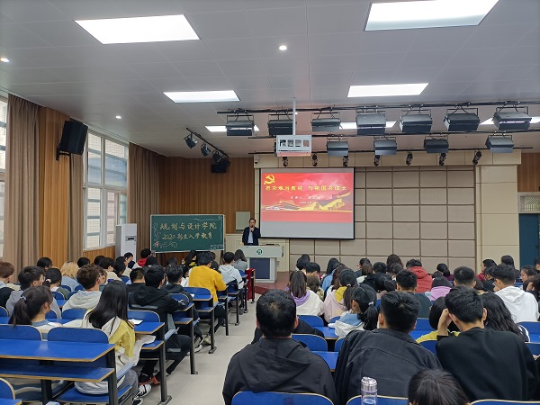 10月20日下午,规划与设计学院在一教E101开展“把灾难当教材,与祖国共同成长”主题教育讲座,规划与设计学院院长胡正元、党总支副书记胡莹莹、副院长张志锋、副院长葛晖、学院部分老师、新生辅导员以及20级全体新生参加了此次讲座。讲座由万莹老师主持。
