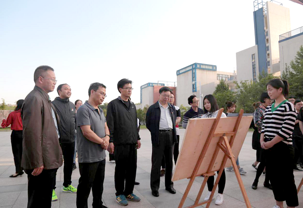 17时,党委副书记刘光生、副校长赵一鹏、王庆兵带领党委宣传部部长王万玲、校团委书记王鹏、校学生处副处长段鸿斌等领导和老师来到比赛现场,指导比赛活动。刘光生认真倾听参赛者讲解“信”德故事和作品创作思想,对同学们的辛勤创作表示肯定,强调在艺术创作过程中要尊重历史、查阅典籍,要做精细、勤思考。