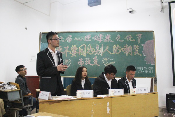 11月15日,规划与设计学院在二教406教室迎来了第六届心理文化节系列活动之辩论赛决赛,本次比赛以“要不要因为别人的嘲笑而改变”为主题,臧哲瑾、刘俊楠等老师担任评委。